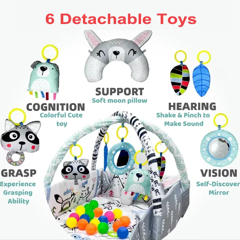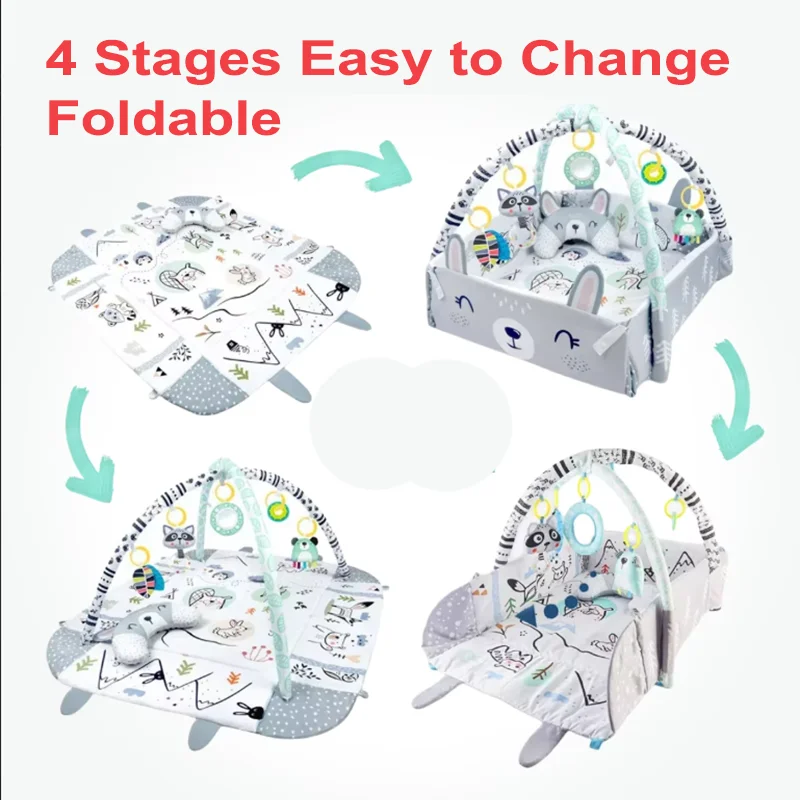 Create a fun and comfortable space for your baby with this 4-in-1 Baby Play Mat, designed for play, learning, and tummy time. This multifunctional activity gym combines a crawling mat, activity center, play gym, and early learning space all in one.