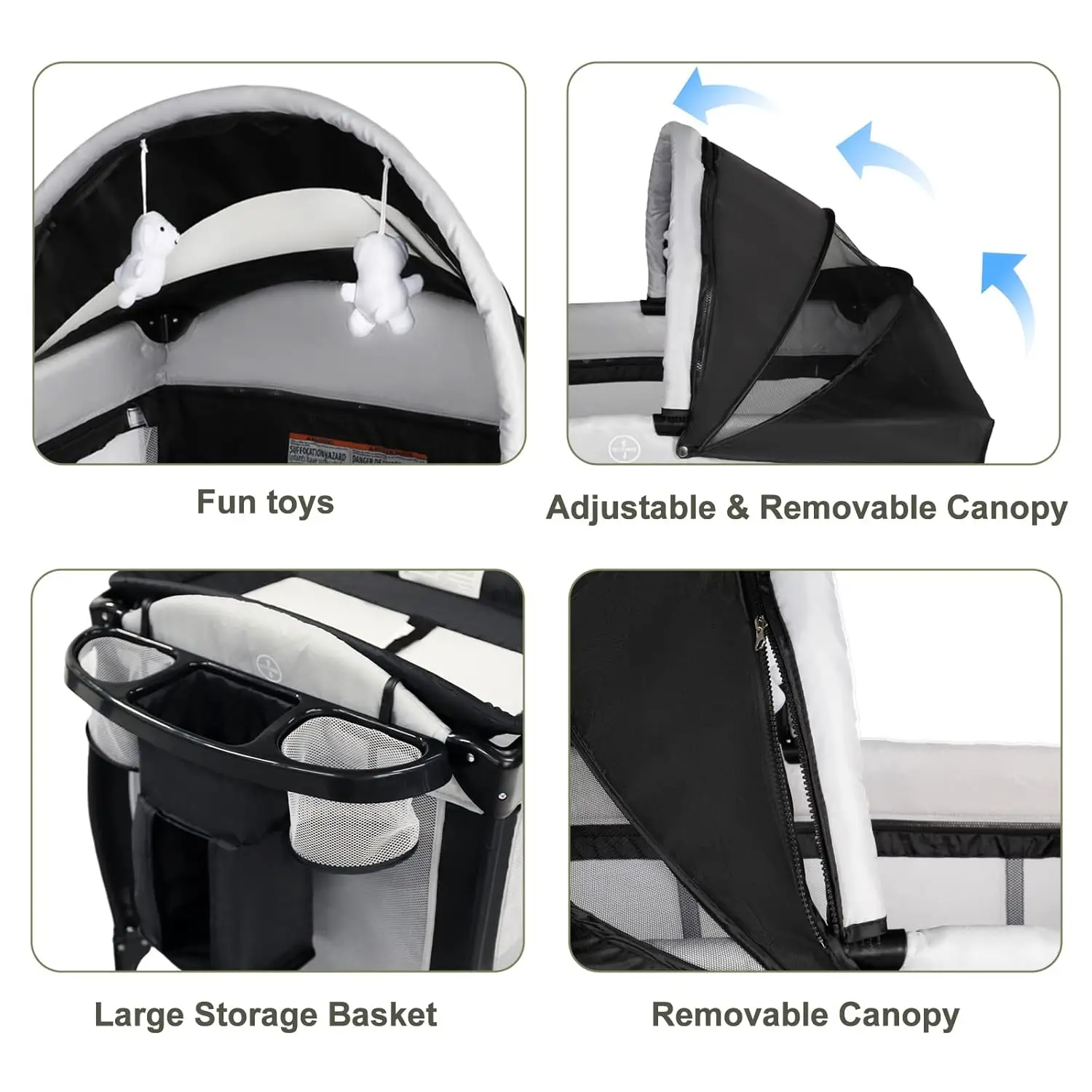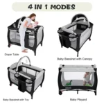 Functions: Bassinet, playpen, travel crib, and baby bed