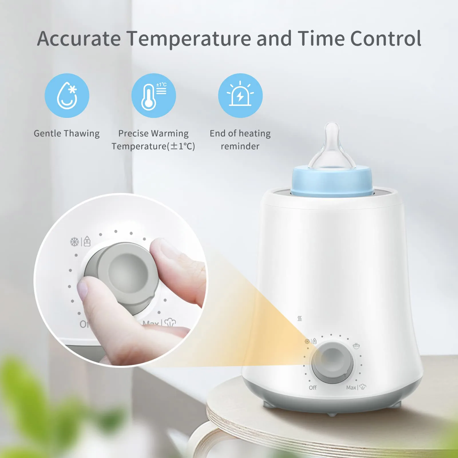 Built with food-grade PP and stainless steel materials, this warmer is designed for durability, safety, and easy cleaning. Its simple controls make it perfect for busy parents who want a reliable way to warm bottles anytime.