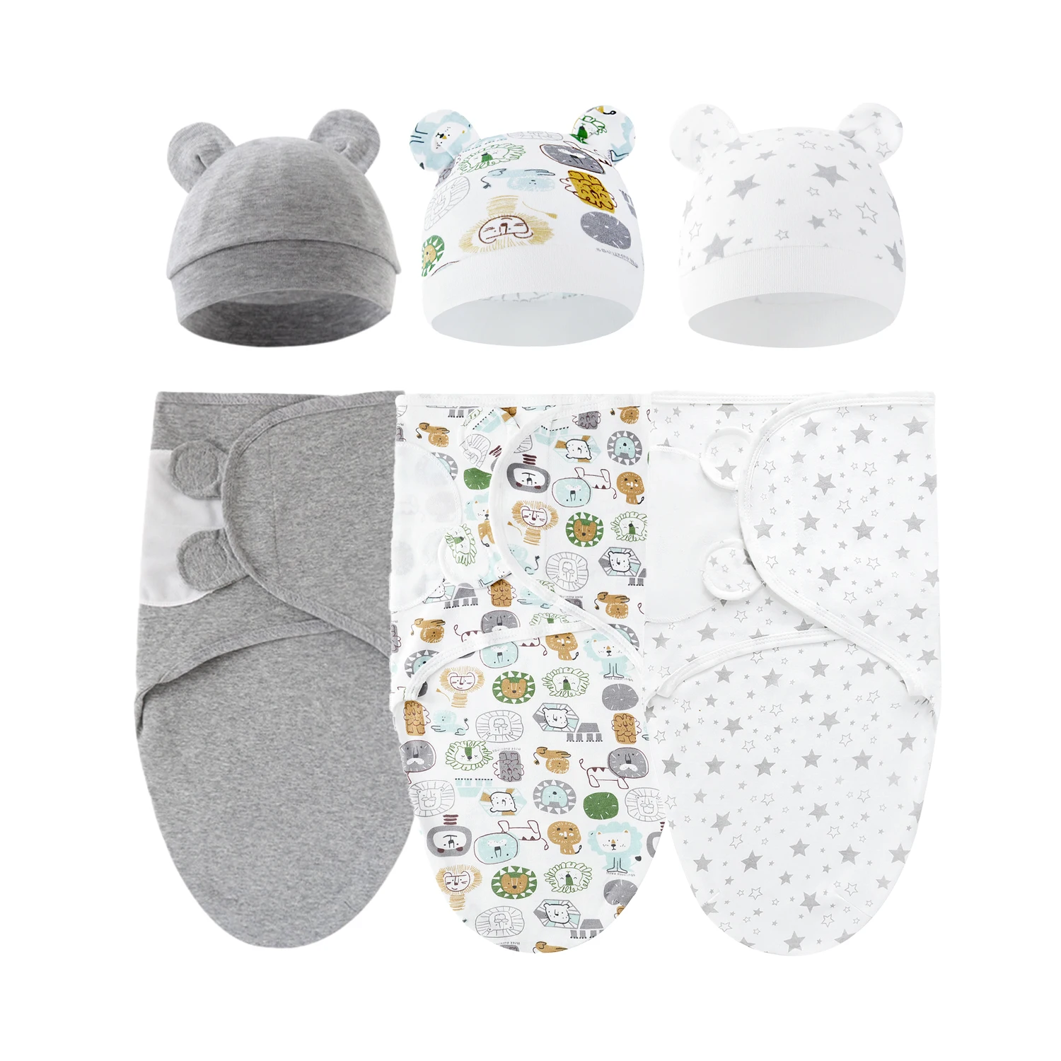 Set Includes: 3 swaddle blankets + 3 matching hats